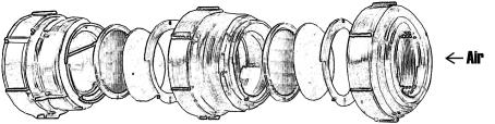 A diagram showing the sampling principle is given in Figure 3.2.1. The air intake should have a cylindrical, vertical section 15 cm wide and at least 25 cm high. This air intake reduce the sampling efficiency for particles larger than 10 µm a.e.d., such as soil dust particles, large sea spray droplets, large pollen, and fog droplets. The filter pack is placed directly in the air intake, and it should have separate supports for the aerosol and the impregnated filters in order to avoid contamination from one filter to the next. An exploded view of a filter pack and its components is shown in Figure 3.2.2.